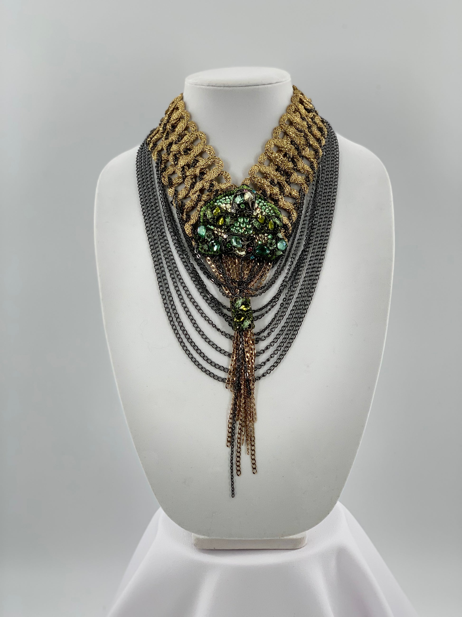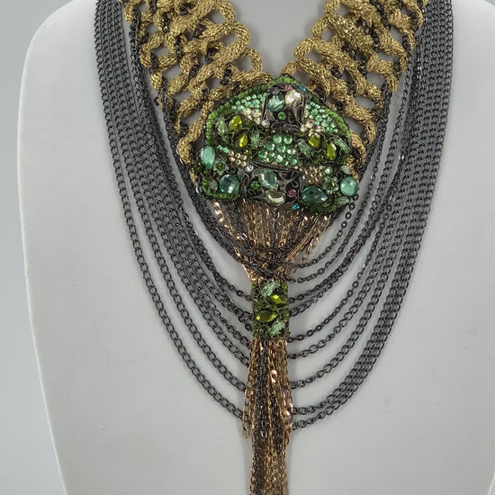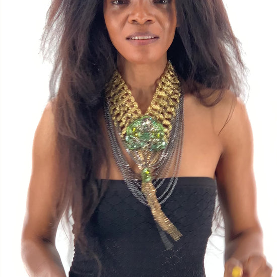Grecian Goddess Layered Necklace With Swarovski Crystals | Women's Hand-Made Jewelry | Black & Gold Chain Multi-Layered Necklace