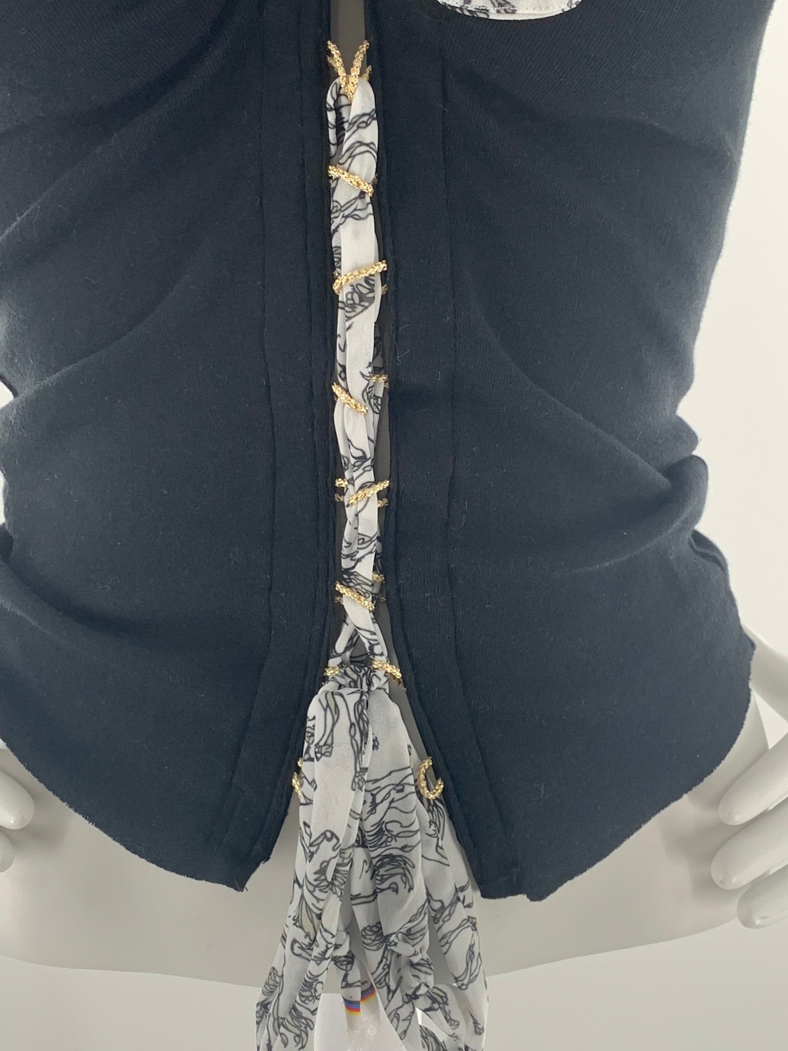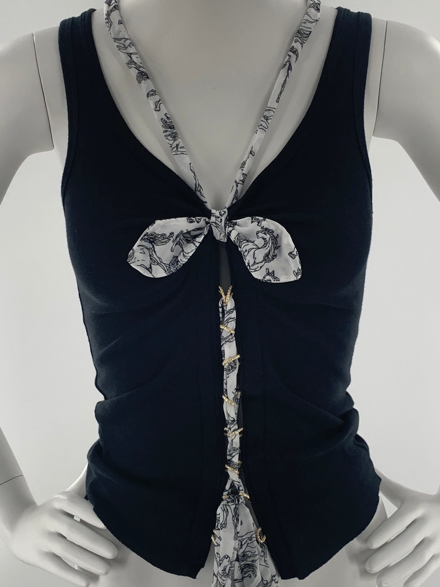 Double Strap Lace Up Tee with Bow-Tie | Black